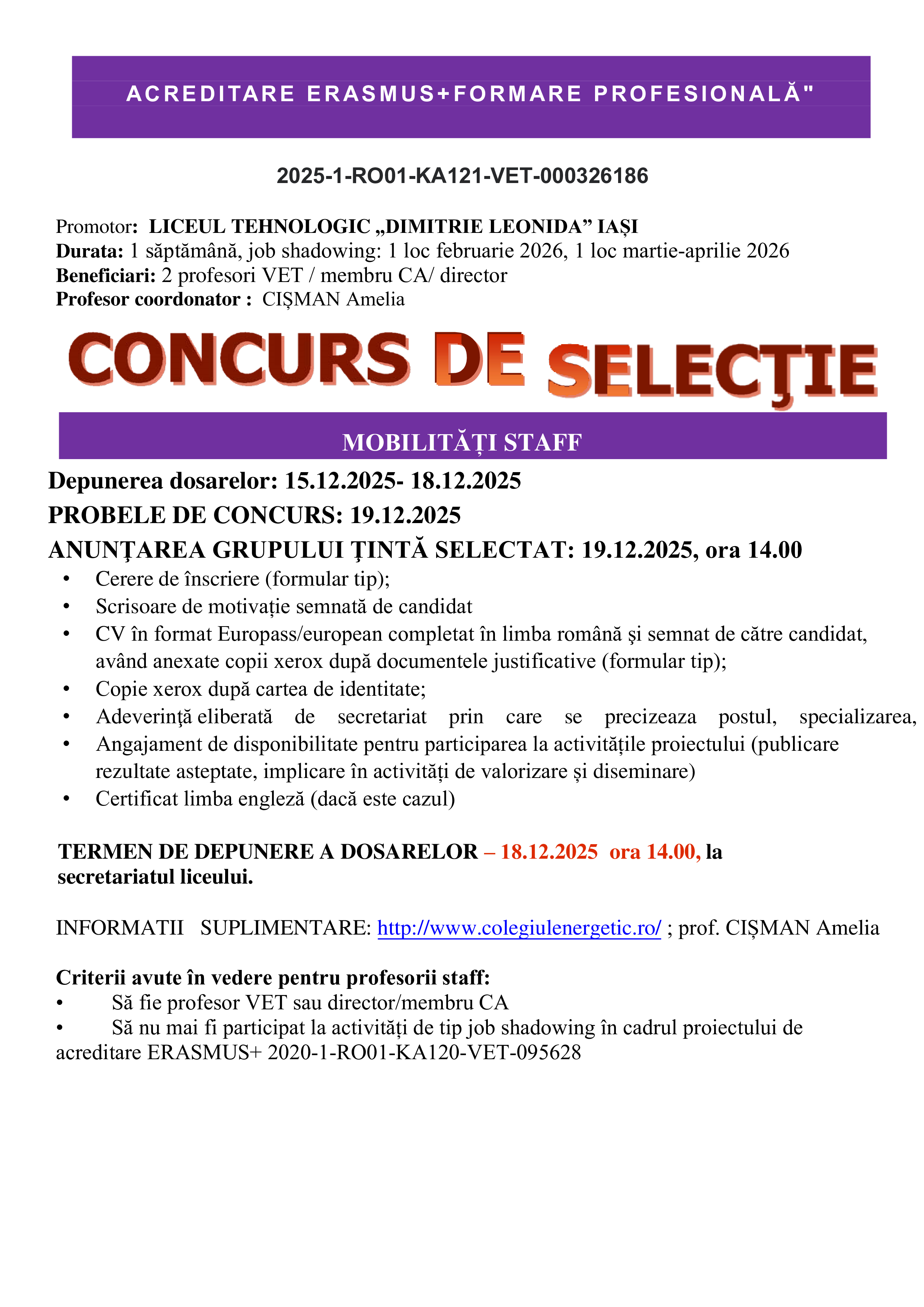 ERASMUS+2025-1-RO01-KA121-VET-000326186 anul V de acreditare