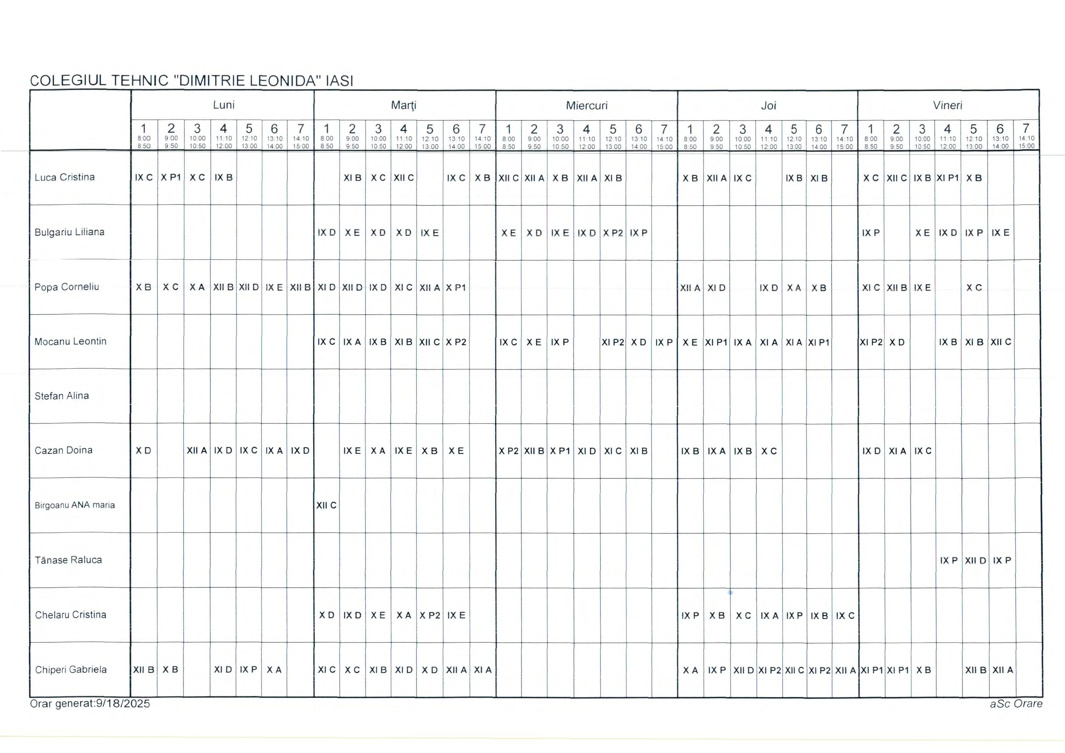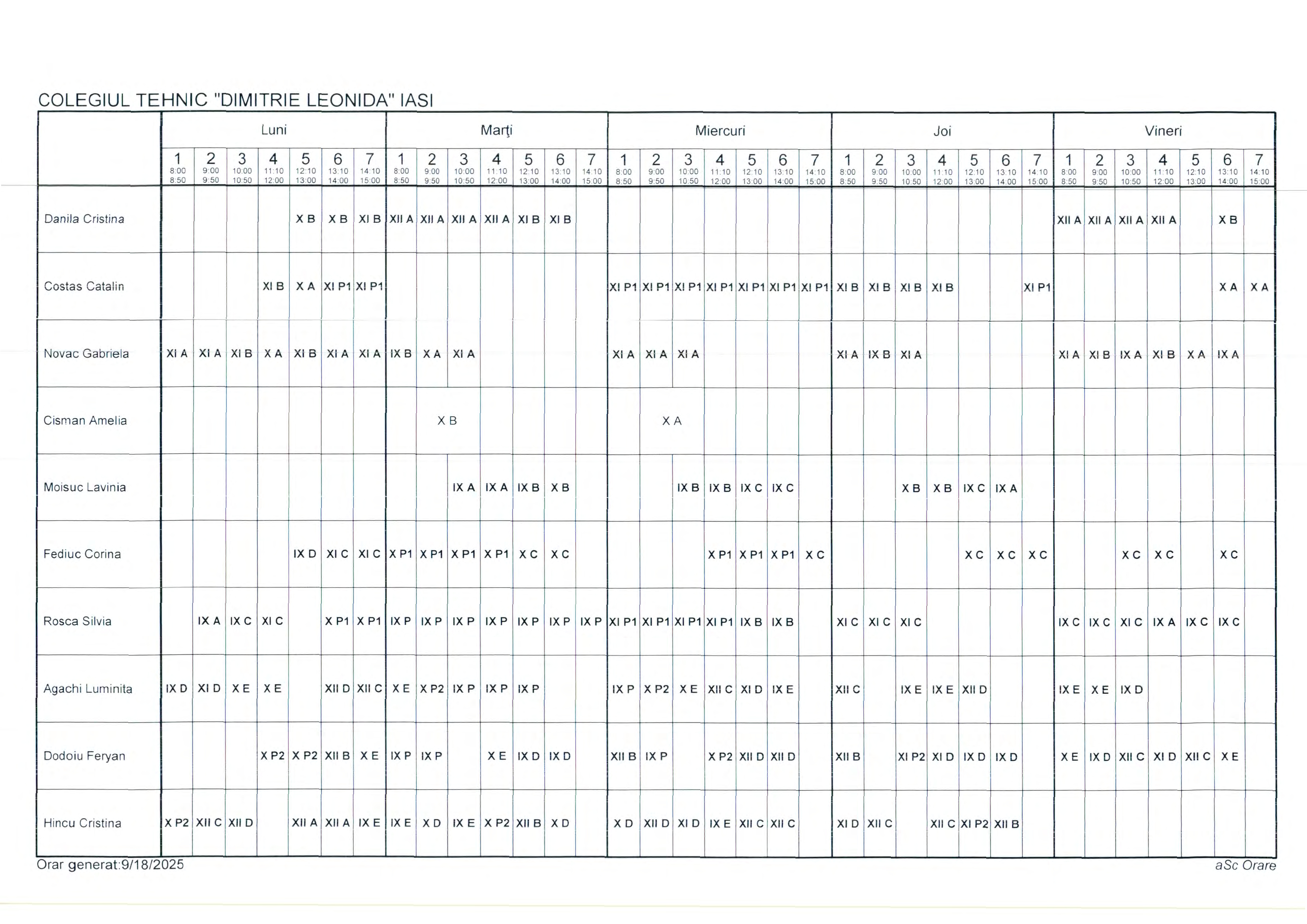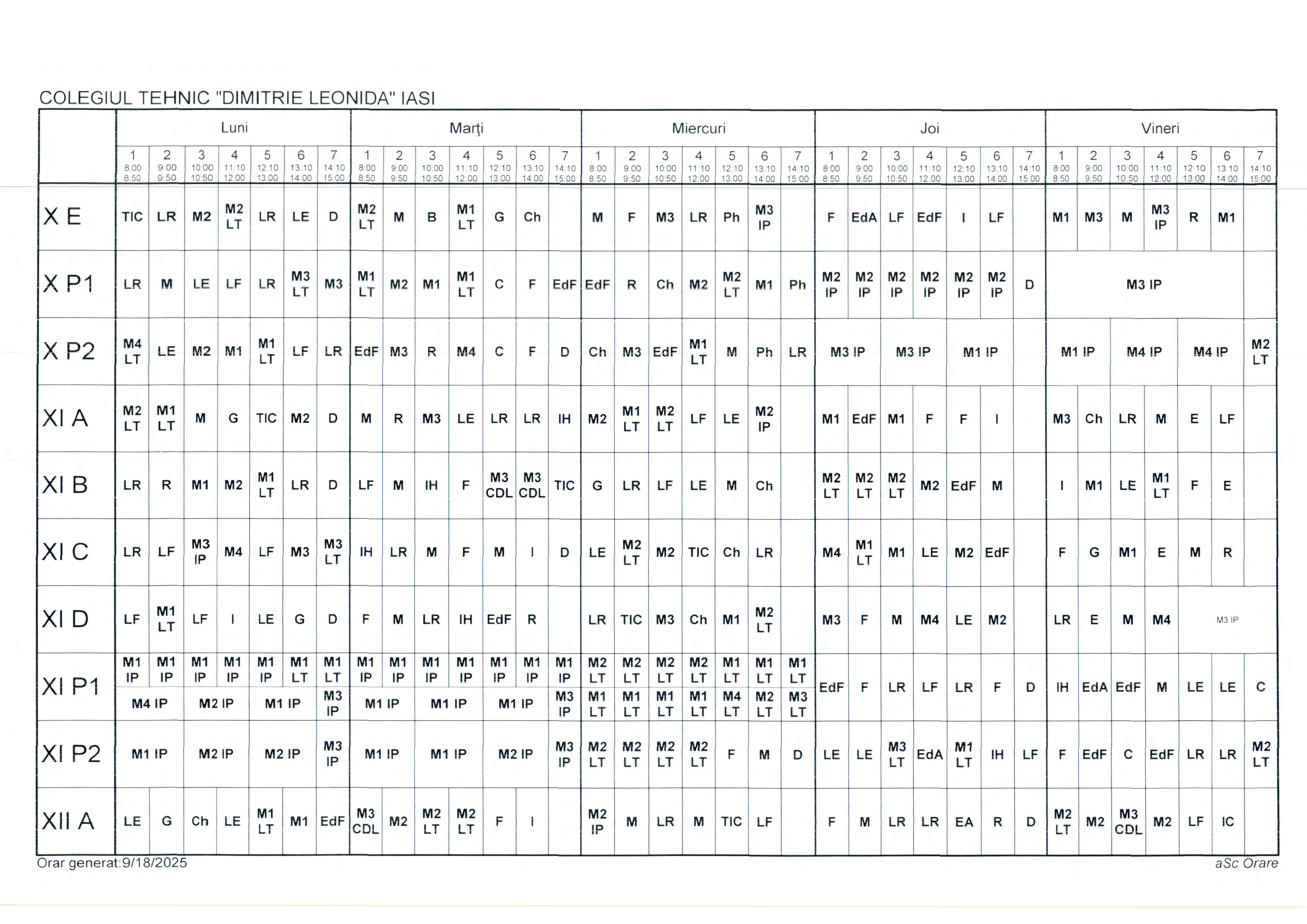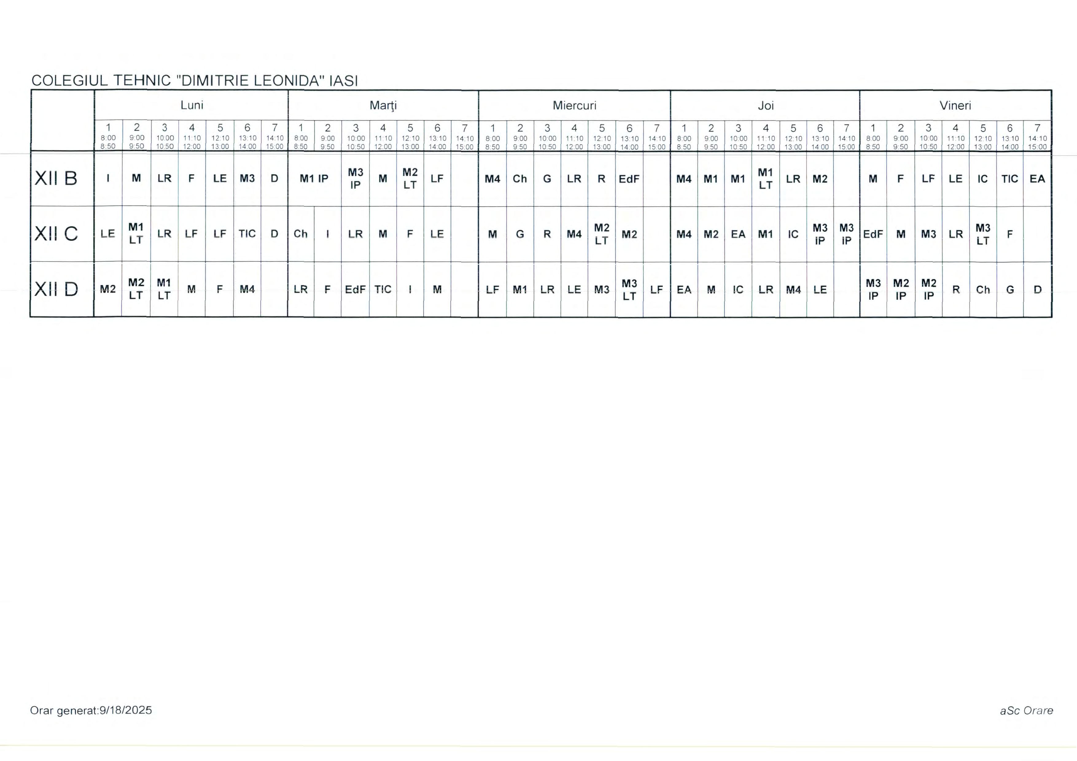 Orar clase cursuri de ZI