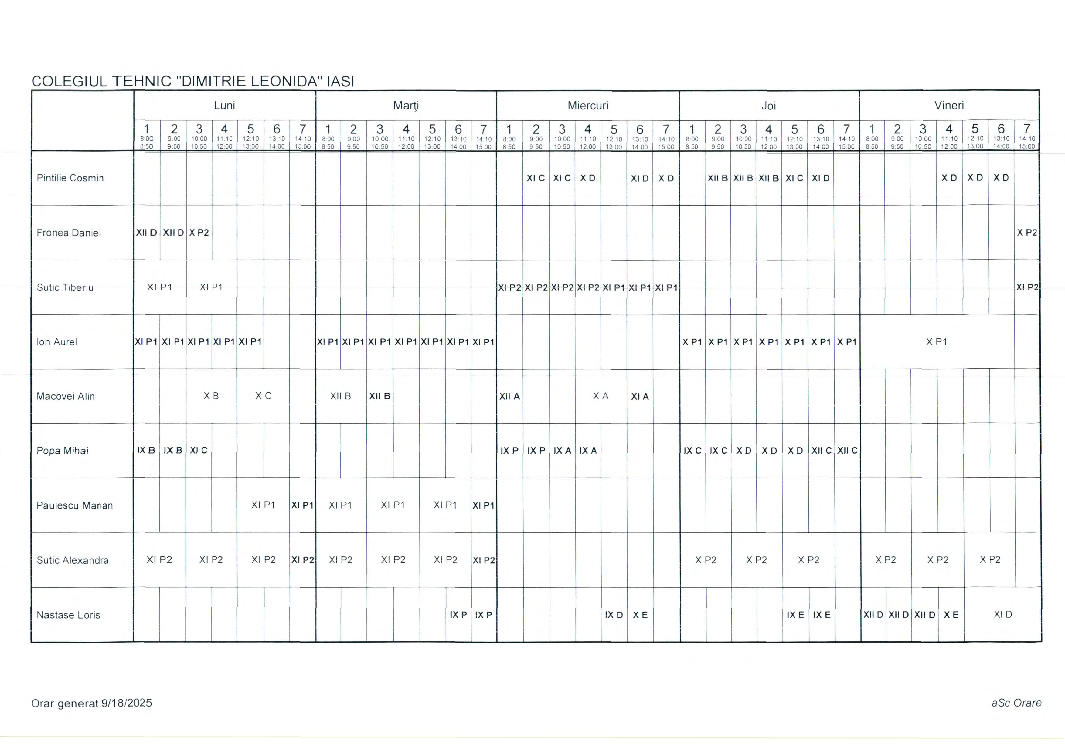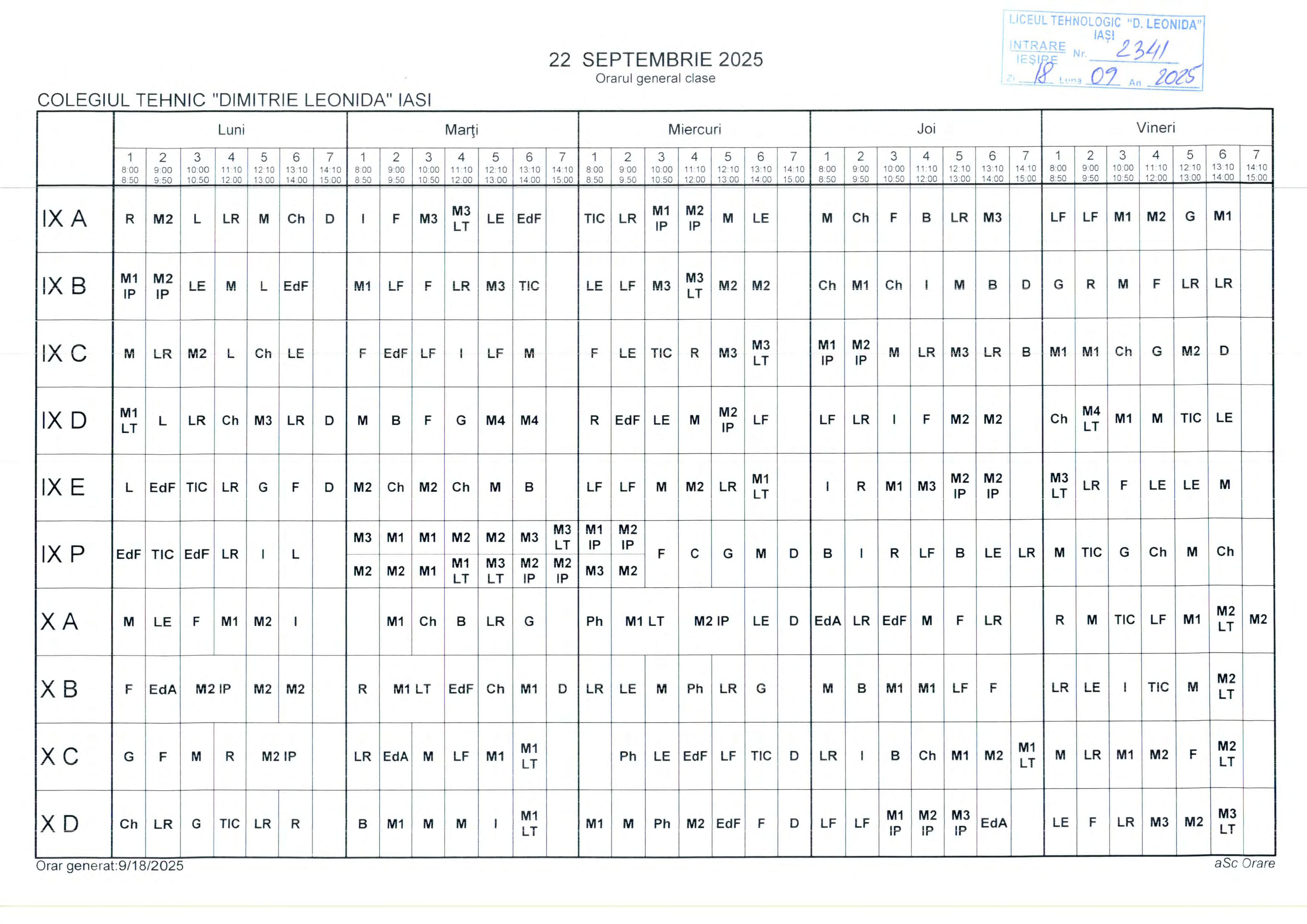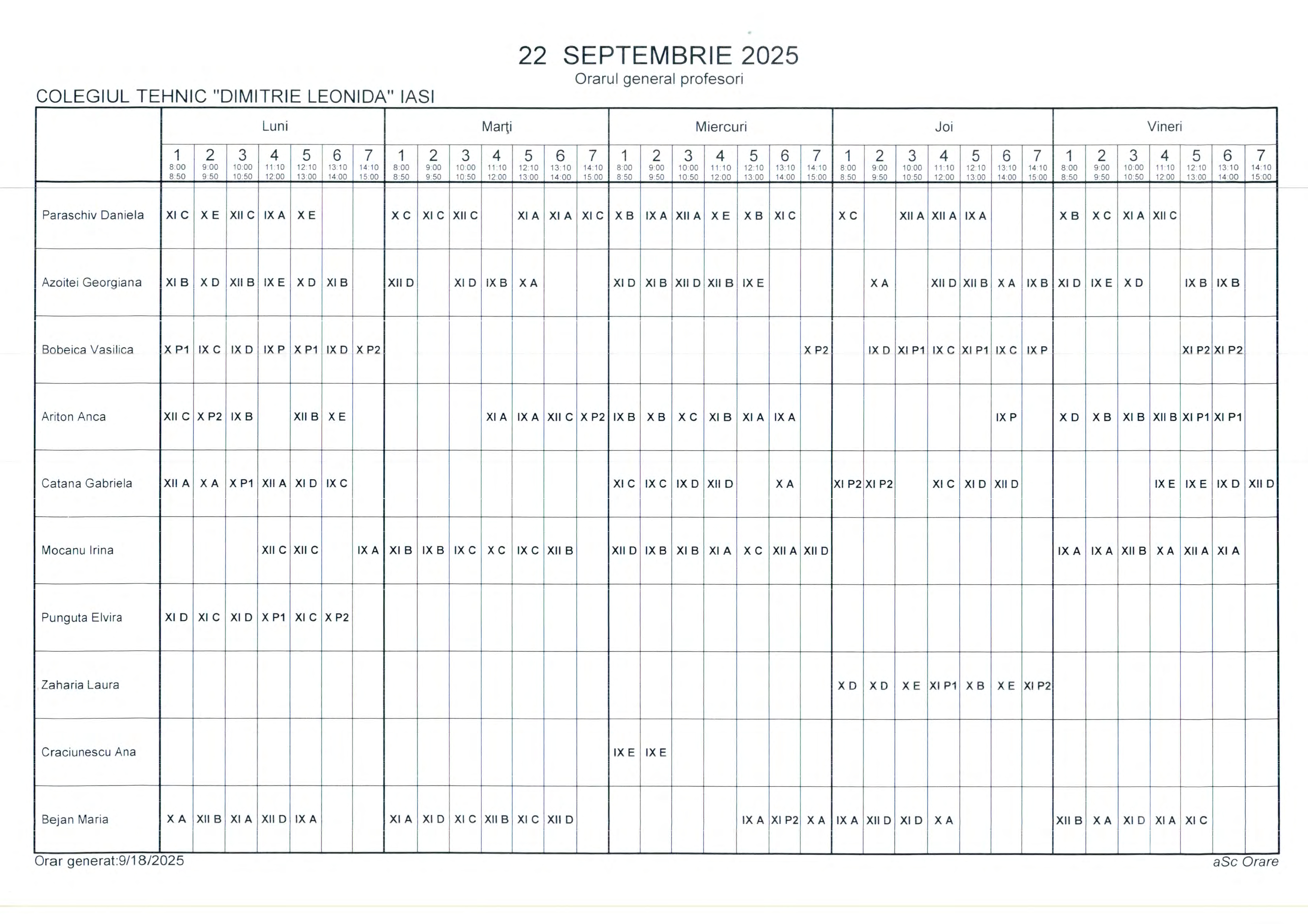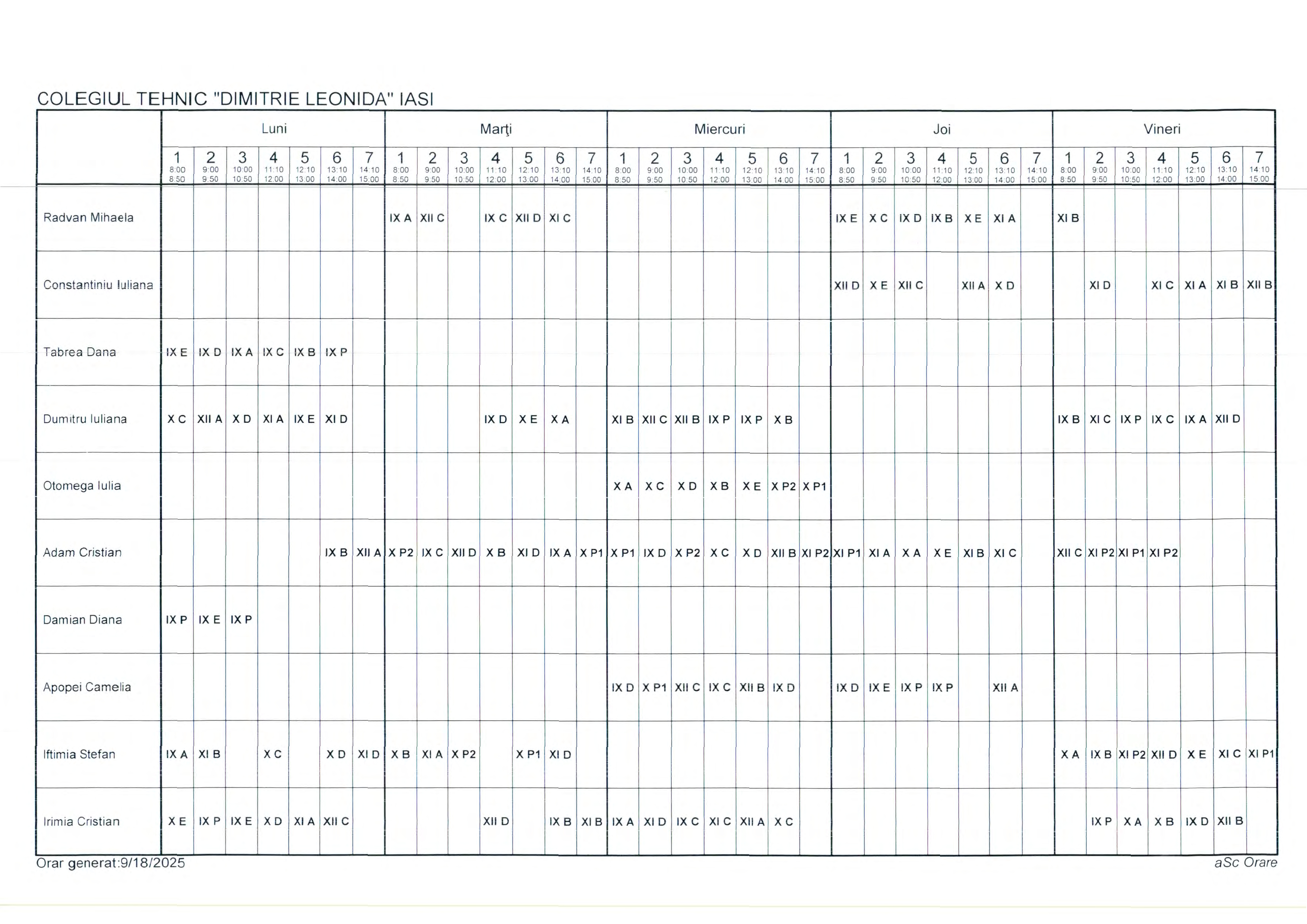 Orar clase cursuri de ZI